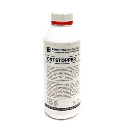 Ontstopper is een zeer agressief zuur en reinigingsmiddel voor afvoeren van gootstenen, toiletten, spoelbakken, vetputten en riolen. Het product vernietigt snel alle organische an anorganische stoffen zoals haren, urinesteen, maandverband, tampons, vet, papier, keukenafval, koffiedik, dweiltjes, zeepresten enz. Tevens verwijdert Ontstopper roest- en kalksteenaanslag.